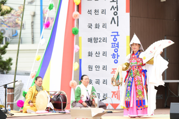 경기 화성시는 지난 7~8일 궁평항에서 어업인과 관광객 2000여명이 참여한 가운데 서해안 전통문화 축제인 ‘제7회 화성시 궁평항 풍어제’를 개최했다. 사진은 축제에 참여한 공연자가 서해안 특유의 별신굿을 선보이는 모습. (사진제공=화성시청)