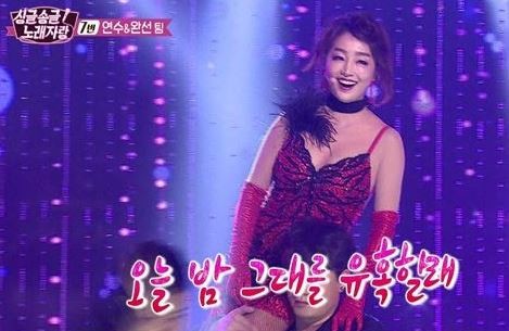 노래자랑의 대미를 장식하는 무대에 오른 그녀는 붉은색 원피스 차림에 붉은 장갑을 낀 채 남자 백댄서들과 함께 매혹적인 몸짓과 표정으로 뜨거운 무대를 선보였다.