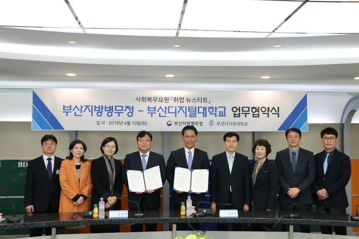 이번 협약은 올해부터 부산병무청에서 추진하고 있는 사회복무요원 ‘취업 뉴스타트’ 사업의 일환으로서 사회복무요원이 부산디지털대학교에 입학해 원격수업을 수강할 경우, 수업료 할인 장학혜택을 부여하는 등 소집해제 후에도 안정적으로 사회에 진출할 수 있도록 하기 위해 마련되었다.