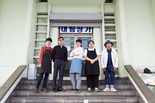 | ▲ 대림상가 앞에서 청년들이 기념촬영을 하고 있다. | ||
