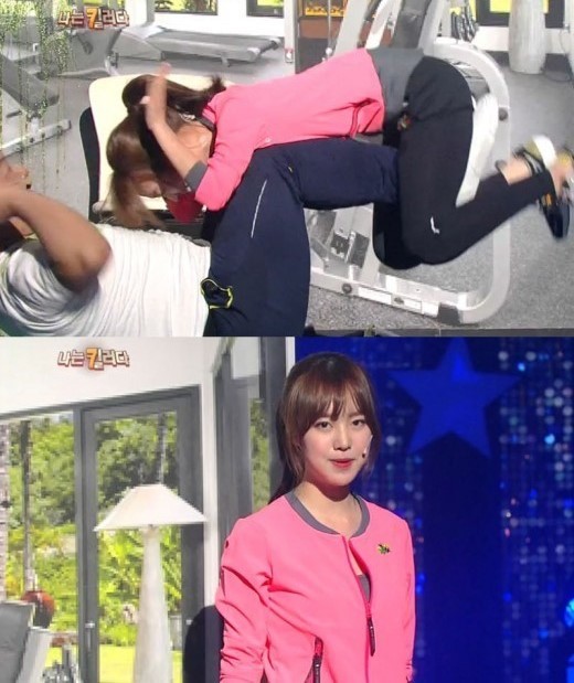 하지만 유민상의 운동을 돕긴커녕 유민상의 발짓에 날아오르는 모습으로 웃음을 자아냈다. 이어 그녀는 유민상의 얼굴을 보고 "너무 웃기게 생겼다"고 폭소를 터트리며 작전실패하는 모습을 보였다.
