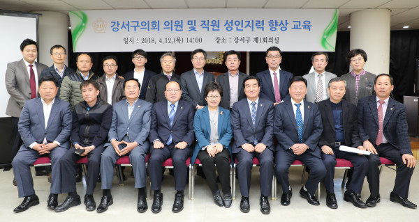 | ▲ ‘성희롱 예방 및 성인지력 향상 교육’에 참여한 강서구의회 의원들과 사무처 직원들이 기념촬영을 하고 있다. (사진제공=강서구의회) | ||