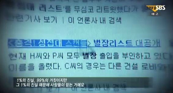 방송에선 전 찌라시 정보맨의 인터뷰가 방송됐다. 그는 "사실은 이제 폐쇄모임이고 아무나 안 끼워준다. 기존에 있던 사람이 (다음 사람에게 모임 자격을)세습하는 거다. 화요일만 모이는 모임이 있고 우리는 매주 수요일마다 모였다. 또한 그 다음에 금융맨들의 모임이 있고 또 이렇게 저렇게 섞여있는 모임도 있고 모임은 아무튼 다양하다"고 말했다.