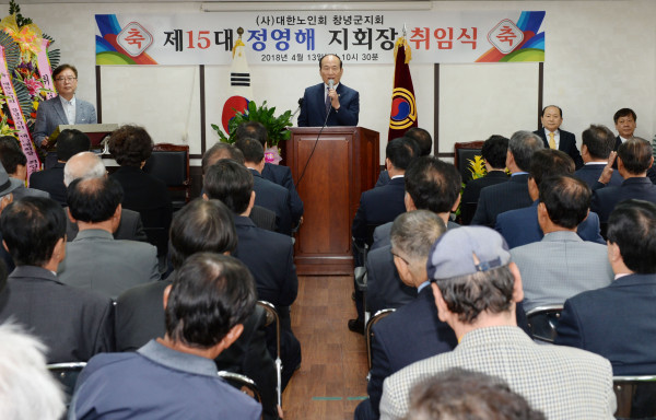 [창녕=최성일 기자]대한노인회 경남 창녕군지회(지회장 정영해)는 13일, 군지회 회의실에서 김충식 창녕군수, 안홍욱 군의회 의장, 각급 기관 단체장 및 경로당 회장 등 100여명이 참석한 가운데 제15대 정영해지회장 취임식을 가졌다. 신임 지회장은 취임사에서 남지농업협동조합장(3선), 경상남도 의회의원 등 역임한 경험과 경륜을 바탕으로 창녕군 18,000여 노인 권익신장과 복지향상을 위해 군과 의회와 협조하여 한층 발전된 대한노인회창녕군지회를 만들겠다고 포부를 밝혔다.