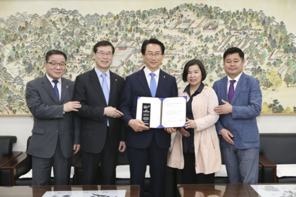 종로구가 최근 열린 '제2회 대한민국 지역경제혁신대상'에서 도시재생 및 부흥 부문 최우수상을 수상했다. 사진은 관계자들이 상장을 들고 기념촬영을 하는 모습. (사진제공=종로구청)