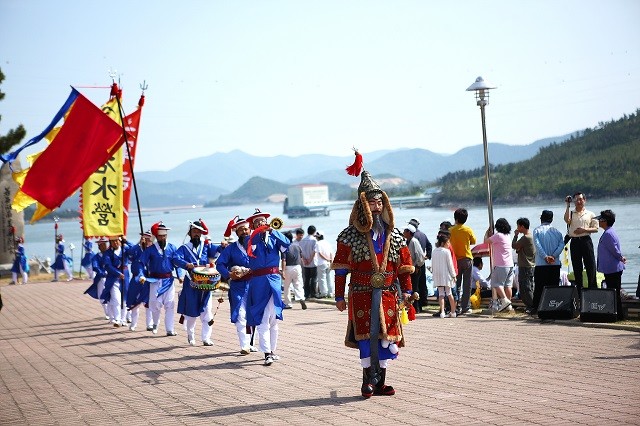 | ▲ 해남 우수영관광지에서 펼쳐지는 명량해협을 지키는 수군들의 행군 시연 모습(사진) | ||