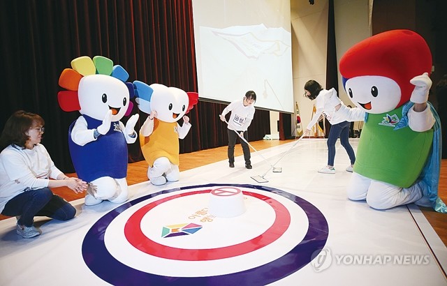 ‘공정선거지원단 발대식’이 열린 17일 오전 대전시 서구 통계교육원 대강당에서 대전·세종선거관리위원회 관계자들이 ‘비방·흑색선전’이라고 쓰인 글씨를 지우는 ‘공명선거 기원 컬링 퍼포먼스’를 하고 있다.