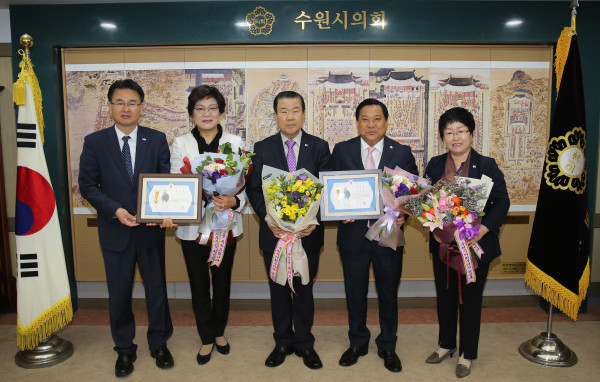 [수원=임종인 기자] 경기 수원시의회 김진관 의장과 박순영 의원이 나눔 실천과 지역사회 헌신의 공을 인정받아 최근 대한적십자사 회장 표창을 받았다.