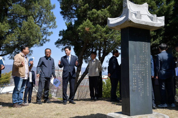 경기 포천시는 지난 16일 시청 간부공무원 70여명이 참석한 가운데 ‘광암 이벽 유적지 정비사업지’와 ‘포천 칸리조트 현장’을 찾아 현장간부회의를 개최했다. 사진은 현장간부회의에 참석한 시청 관계자들이 현장점검을 하고 있는 모습. (사진제공=포천시청)