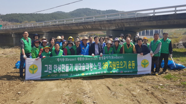 경기 안성시 금광면 새마을지도자협의회와 새마을부녀회는 18일 조령천 주변에서 지역을 찾는 관광객에게 깨끗하고 쾌적한 이미지를 제공하자는 취지에서 ‘환경정화활동’을 실시했다. 사진은 환경정화활동에 참여한 관계자들이 기념촬영을 하는 모습. (사진제공=안성시청)