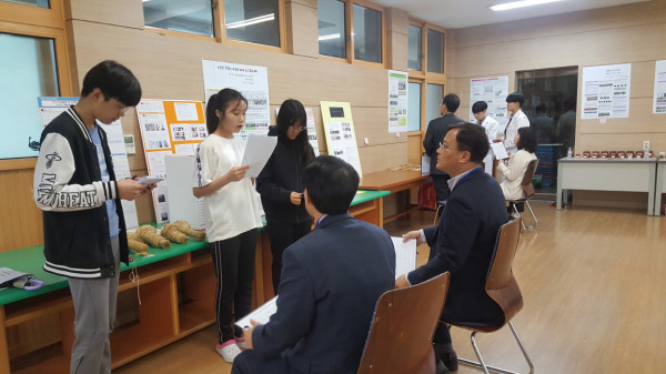 경북 구미교육지원청은 지난 23일 구 창의인성교육지원센터에서 ‘제64회 과학전람회 구미시예선대회’를 개최했다. 사진은 학생들이 연구 과정 및 결과 발표를 하는 모습. (사진제공=구미교육지원청)