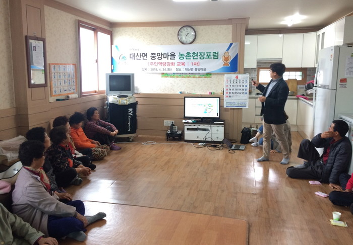 군은 지난 24일 대산면 중앙마을과 산인면 어연마을에서 마을리더, 추진위원장, 주민 등 각각 30여 명이 참석한 가운데 농촌현장포럼 1차 과정인 주민역량강화 교육을 했다.