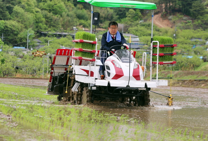 첫 모내기를 실시한 ‘골든퀸 2호’는 중조생종 중간찰벼 기능성 품종으로 단백질 함량이 적은 저아밀로스 쌀로서 밥을 지을 때 은은한 팝콘향이 나는 특징이 있다.