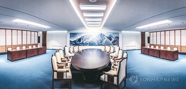 오는 27일 판문점 평화의집에서 열릴 문재인 대통령과 김정은 북한 국무위원장과의 남북정상회담장이 공개됐다. 정상회담 테이블은 궁궐의 교각 난간 형태를 모티브로 하여 두 개의 다리가 하나로 합쳐지는 모습으로 제작됐으며 정상들이 앉는 테이블 중앙 지점의 테이블 폭을 2018mm로 제작, 한반도 평화 정착 실현을 위한 역사적인 2018년 남북정상회담을 상징하는 의미를 담고 있다.