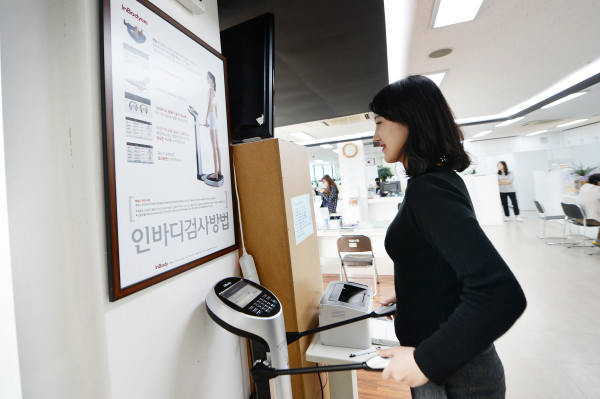 최근 동대문구는 구민 건강 증진을 위해 14개 전동 주민센터 민원실에 체성분 분석기(인바디 측정기)를 설치했다. 사진은 주민이 이문1동 주민센터 2층 민원실에 설치된 체성분분석기를 이용하고 있는 모습. (사진제공=동대문구청)