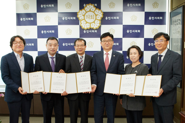 | ▲ 경기 용인시의회는 최근 2017회계연도 결산검사 위원 선임을 마무리하고 최근 이들에게 위촉장을 수여했다. 사진은 위촉장을 받은 결산검사 위원들의 모습. (사진제공=용인시의회) | ||