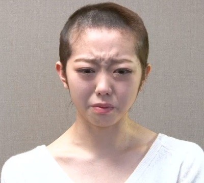 영상 속에 미네기시 미나미는 삭발인 모습으로 나타나 대중들에 충격을 안겼다.