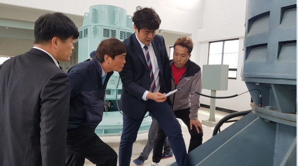 경기 김포시가 최근 시설물 보수·보강을 마친 석탄배수펌프장에서 한국전기안전공사, 관련 펌프 및 수배전반 업체, 관계공무원 등 15여명이 참석한 가운데 시험가동을 했다. 사진은 이번 시험가동에 참여한 관계자들이 배수펌프장을 살펴보고 있는 모습. (사진제공=김포시청)