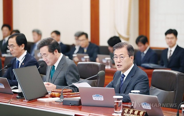 문재인 대통령이 8일 청와대에서 열린 국무회의를 주재하고 있다.