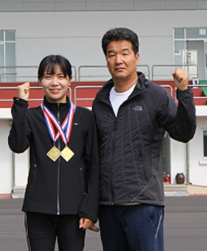 | ▲ 제47회 전국종별육상선수권대회에서 2관왕을 차지한 해남군청 육상팀 신미란 선수(좌)와 박한수 감독. | ||