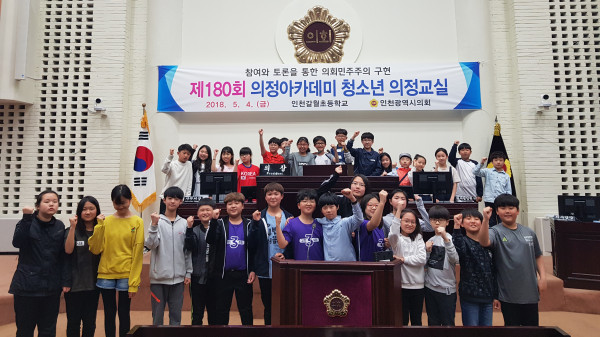 [인천=문찬식 기자] 인천시의회는 최근 부평구 갈산2동 소재 인천갈월초등학교 학생회 임원 32명이 참가한 가운데 ‘제180회 의정아카데미 청소년 의정교실’을 개최했다.