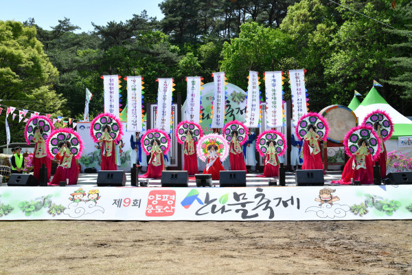 경기 양평군은 지난 4~6일 사흘간 용문산관광지 일원에서 열린 ‘제9회 양평용문산산나물축제’의 1부 행사를 성황리에 마무리했다. 사진는 용문산산나물축제 행사장에서 축하공연이 진행되고 있는 모습. (사진제공=양평군청)