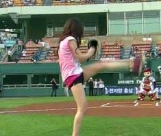 당시 그녀는 왼쪽다리를 시원하게 번쩍 들어 올리는 일명 '하이킥 시구'를 선보였지만, 짧은 핫팬츠 때문에 엉덩이 살이 노출되는 굴욕을 당했다.