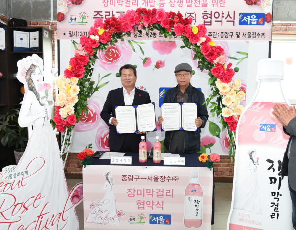 중랑구-(주)서울장수, 장미막걸리 업무협약