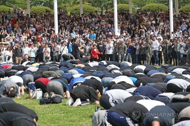 14일 오후 경북 포항 해병대교육훈련단에서 열린 현역병 입영문화제에서 입영 장병이 가족과 지인에게 큰절하고 있다.