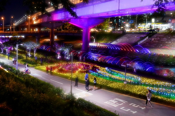 | ▲ 묵동천 장미정원에서 야간 조명이 켜진 모습. | ||