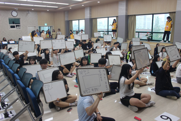 경기 부천교육지원청은 ‘2018년 재난대응 안전한국훈련’의 일환으로 오는 18일까지 5일간 ‘2018 부천교육 안전 Festival’을 실시한다. 사진은 16일 진행된 안전골든벨 행사에서 학생들이 퀴즈를 맞히고 있는 모습. (사진제공=부천교육지원청)