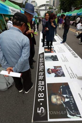 5.18 민주화운동 38주년을 하루 앞둔 17일 광주 동구 금남로에서 시민난장 행사가 펼쳐져 1980년 5월 항쟁 진압에 적극 가담한 인명사전 전시물이 마련돼 있다.
