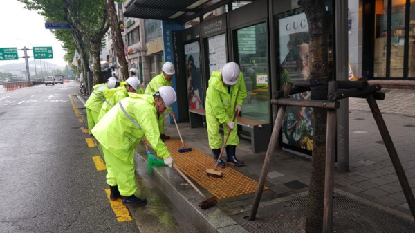 강남구, 빗물 활용 게릴라 물청소 실시