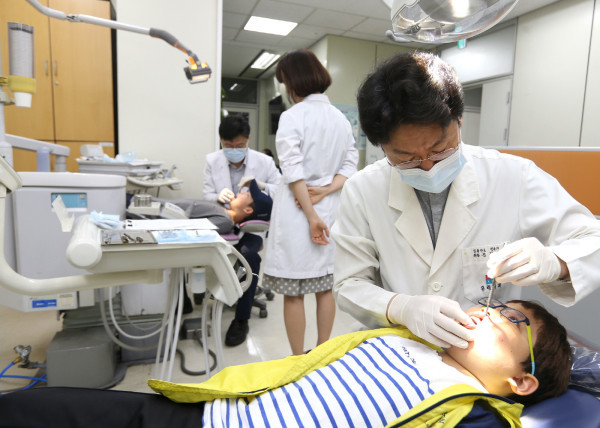 금천구는 18일 오전 8시 구보건소 구강보건실에서 구치과의사회와 공동주관으로 ‘금천구 건치아동 선발대회’를 개최했다. 사진은 대회에 참여한 어린이들이 구강검사를 받고 있는 모습.(사진제공=금천구청)
