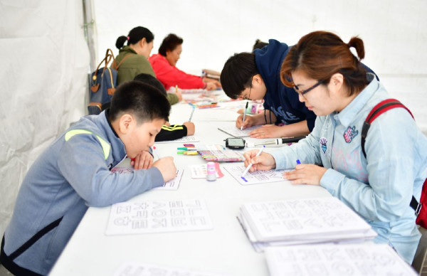경기 여주시가 올해로 탄신 621돌을 맞이한 세종대왕의 업적을 기리고자, 세종대왕 묘소인 ‘영릉’ 일대에서 세종실록 다시쓰기 등을 비롯한 한글 퍼포먼스를 진행했다. 사진은 한글을 색칠하는 형태의 프로그램에 참석한 참가자들의 모습.(사진제공=여주시청)
