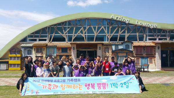 경기 양평군 청소년상담복지센터는 충남 논산시 소재 KT&G 상상마당에서 지난 18~19일 1박2일의 일정으로 청소년 13가족 39명을 대상으로 ‘2018 인성함양 프로그램’인 ‘가족과 함께하는 행복뿜뿜! 1박2일’ 가족캠프를 진행했다. 사진은 참가자들이 기념촬영을 하는 모습. (사진제공=양평군청)