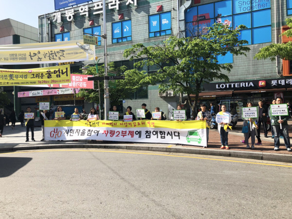구로구는 23일 오전 8~9시 지역내 환경단체와 함께 개봉역 일대에서 고농도 초미세먼지 발생 시 보건용 마스크 착용, 대중교통 이용, 차량 2부제 동참 등의 내용으로 캠페인을 전개했다. 사진은 참여자들이 캠페인을 벌이는 모습. (사진제공=구로구청)