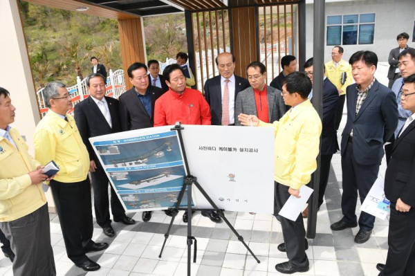 경남도의회 건설소방위원회는 최근 사천바다케이블카(사천 초양도~각산) 현장을 방문해 시설 운영 현황과 이용객 안전 확보를 위한 현장 점검을 실시했다. 사진은 현장 관계자로부터 사업 현황 등을 청취하고 있는 건설소방위 소속 위원들의 모습. (사진제공=경남도의회)
