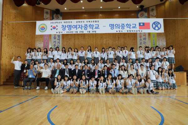 중화민국 가오슝시 명의국민중학교 학생들이 최근 2박3일간의 일정으로 경기 여주창명여자중학교를 방문해 창명여중 학생의 집에서 홈스테이를 하면서 학교의 프로그램 및 동아리 활동에 참여했다. 사진은 행사에 참여한 학생들이 기념촬영을 하는 모습. (사진제공=여주교육지원청)