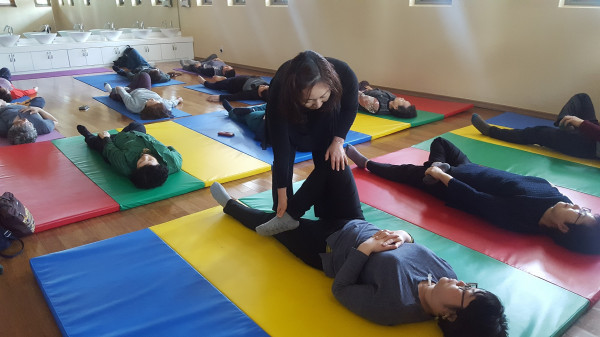 인천 연수구보건소 송도건강생활지원센터는 최근 장애인을 대상으로 사회참여프로그램 커피메이킹교실·요가교실을 운영했다. 사진은 프로그램 참여자들이 요가를 하고 있는 모습. (사진제공=연수구청)