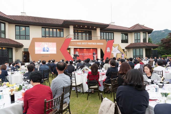 올해 6번째를 맞는 ‘정관장 우수 가맹점 시상식’은 서울 워커힐호텔의 에스톤하우스 야외무대에서 우수 가맹점 사업자 및 동반 가족을 초청해 호텔 만찬과 함께 유명 가수 공연이 어우러진 축제 형식의 시상식으로 진행됐다.