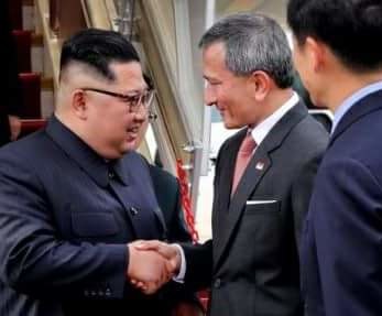 김정은 위원장은 공항에서 비비안 발라크리쉬난 싱가포르 외무장관의 영접을 받았으며, 이날 리센룽 총리와 만날 예정이다.