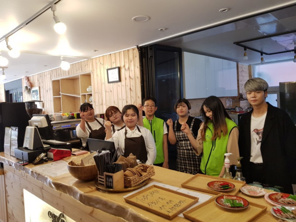 경기 여주시는 지난 5일 신륵사관광지를 소개하는 ‘구르미 카페’에서 학교밖 청소년에서 바리스타로 변모한 청소년들 '커피 로스팅 발표회 겸 시음회'를 진행했다. 사진은 바리스타 활동을 하고 있는 청소년들이 행사 종료 후 기념촬영을 하는 모습. (사진제공=여주시청)