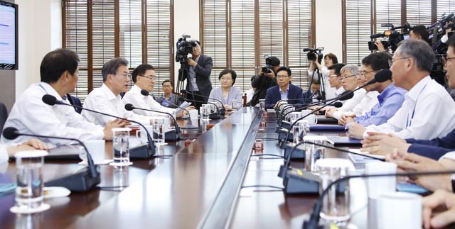 문재인 대통령이 11일 오후 청와대 여민관에서 열린 수석ㆍ보좌관회의를 주재하고 있다.