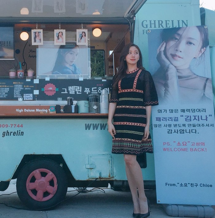 고성희는 자신의 사회관계망서비스에 "이러기야? 이러기야? 🙈♥️"소요"의 컴백을 축하해주며 서프라이즈 커피차를 보내준 @chloe_chloeetclaire ♥️ 내팅구팅구" 라며 친구에게 다정한 메세지를 전 커피차 앞에서 늘씬한 각선미를 자랑하는 사진을 게재했다.