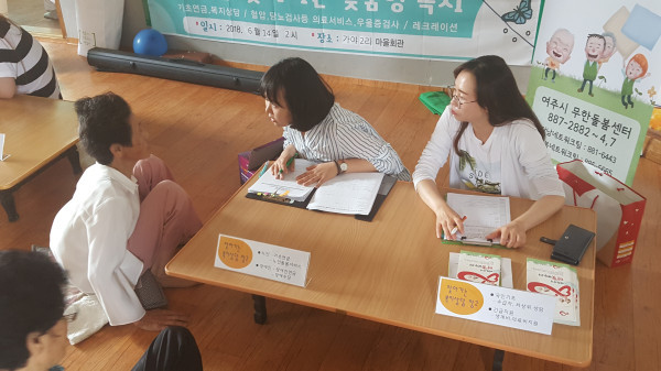 경기 여주시 강천면은 수요자 중심의 복지행정을 구현한다는 취지에서 14일 가야1리 마을회관을 방문, 지역내 노인들을 대상으로‘찾아가는 복지상담실’을 운영했다. 사진은 기초연금 등과 관련한 상담을 받는 지역노인의 모습.(사진제공=여주시청)