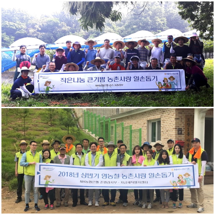 먼저 NH농협은행 허충회 부행장과 리스크관리부 임직원 20여명은 지난 18일 화성시 남양읍 가시리마을에서 포도봉지씌우기 등 농촌일손돕기를 실시했다고 밝혔다.