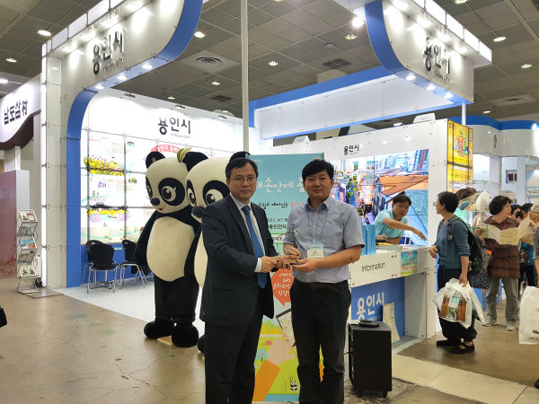 경기 용인시는 지난 14~17일 서울 강남구 코엑스전시장에서 열린 '제33회 한국국제관광전'에서 관광 콘텐츠를 잘 부각시킨 것 등을 인정받아 한국국제관광전 조직위원회로부터 '최우수 홍보상'을 받았다. 사진은 상패를 들고 기념촬영을 하는 시 관계자들의 모습. (사진제공=용인시청)