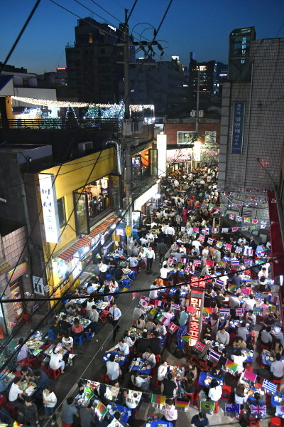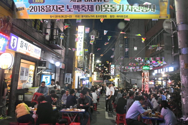 | ▲ 을지로 노가리 골목에서 시민들이 맥주잔을 부딪히며 즐거워 하고 있다.(사진제공=중구청) | ||