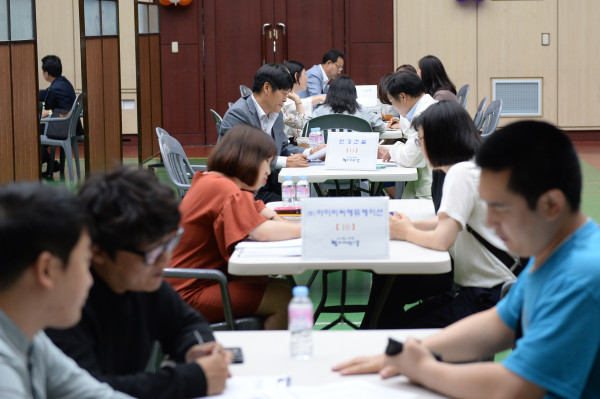 19일 오후 2시 동대문구청 다목적강당에서 구인 구직 만남의 장 ‘일구데이’가 열렸다. 특히 이번 일구데이는 동대문구, 중랑구, 광진구가 함께 추진해 질적, 양적으로 보다 내실있게 구성됐다. 사진은 구직자들이 취업 상담을 받고 있는 모습. (사진제공=동대문구청)